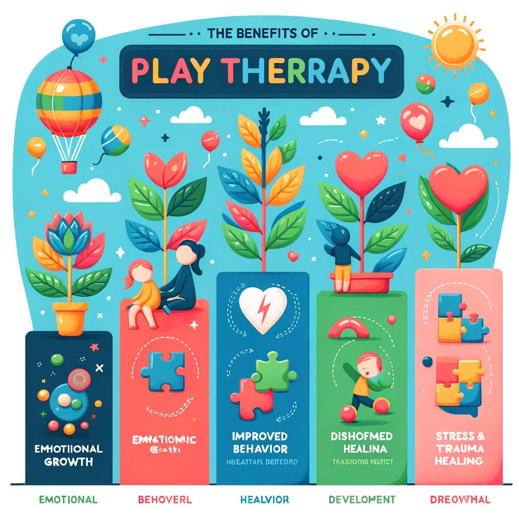 Τα οφέλη της θεραπείας μέσω παιχνιδιού εκτείνονται πέρα από την ανάπτυξη συναισθηματικών και κοινωνικών δεξιοτήτων, περιλαμβάνοντας τη βελτίωση της αυτοεκτίμησης, την ανάπτυξη της ενσυναίσθησης, και την ενίσχυση της γνωστικής λειτουργίας.